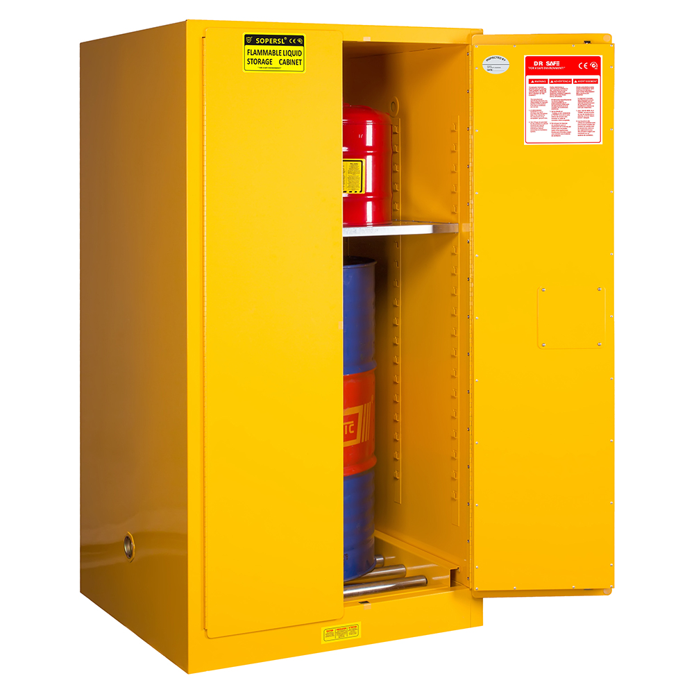 1. All Welded, Double Walled Construction, 16 gauge (1.2mm) Steel Drum Safety Cabinets reinforced with channel frame all around, base with 20 gauge(2.0mm) add strength.