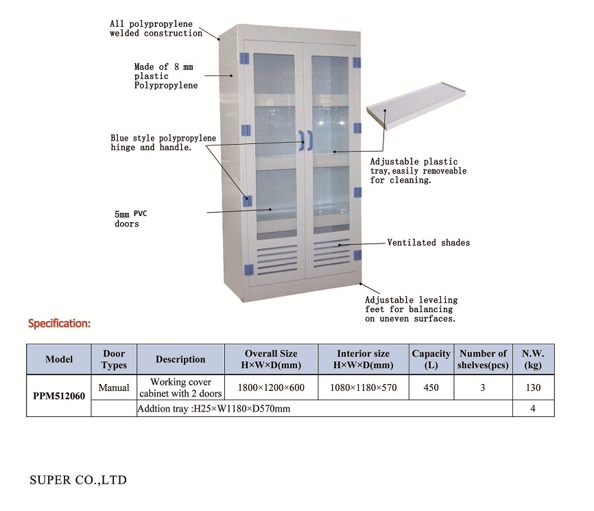 SUPER CO LTD offers a full line of cleanroom-safe polypropylene cabinets for today's most demanding manufacturing and laboratory environments.