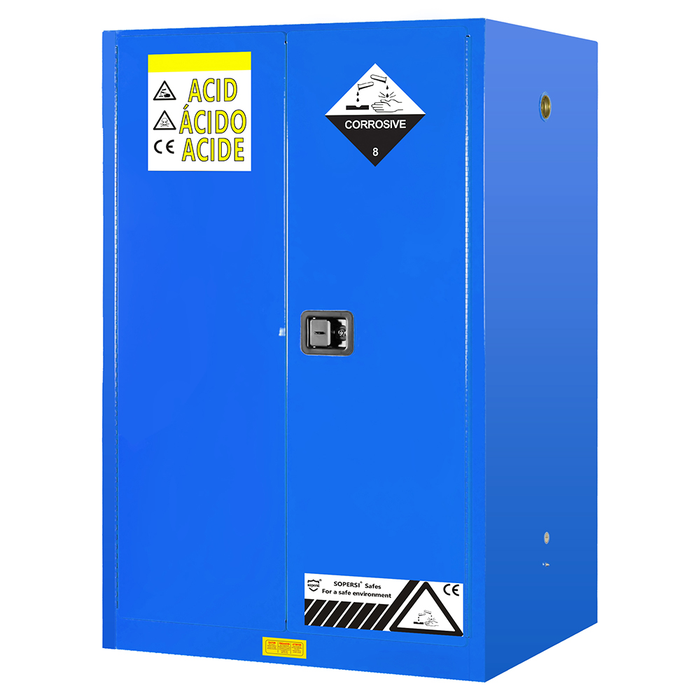 Acid Corrosive Storage Cabinets are designed for the safety storage of acid liquid. These highly visible and durable blue powder-coated cabinets features a "Acid" warning on the front doors.Acid Corrosive Storage cabinets, 2 gallons to 90 Gallon capacity, are available based on the ultimate size of the cabinet selected.
