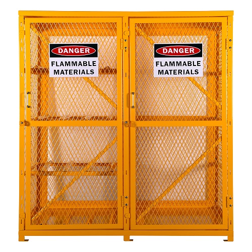 Meeting all relevant NFPA and OSHA standards, this gas cylinder storage locker is equipped to store dangerous and flammable materials.
