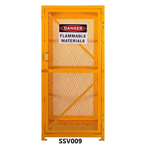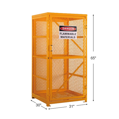 Meeting all relevant NFPA and OSHA standards, this gas cylinder storage locker is equipped to store dangerous and flammable materials.